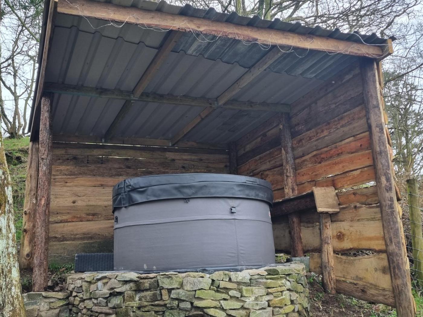 The holiday home includes 1 bedroom, 1 bathroom with a walk-in shower and a hot tub, a seating area, and a fully equipped kitchen with a microwave. The accommodation offers a fireplace.