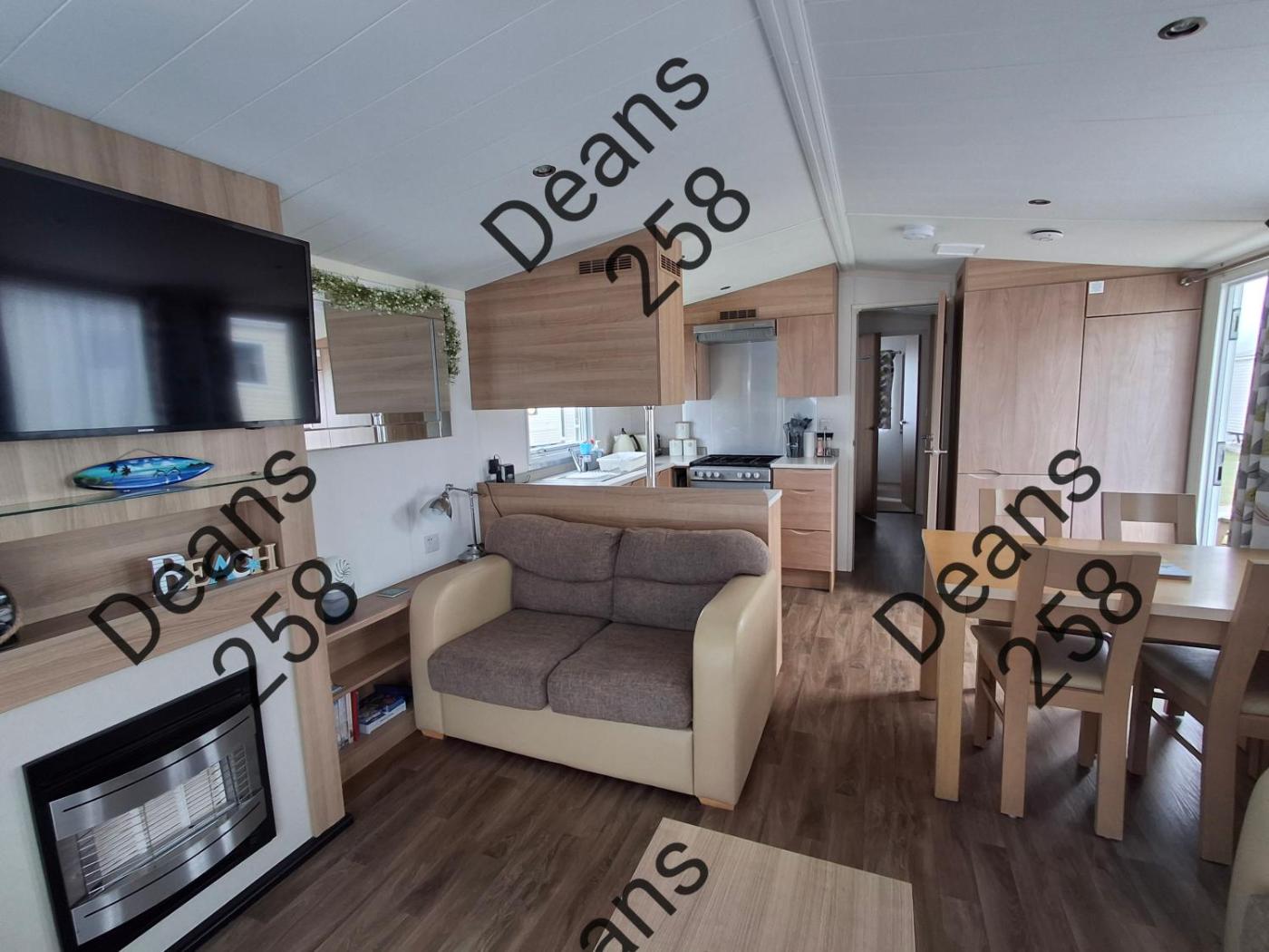 Caravan. This mobile home features 1 living room, 2 separate bedrooms and 2 bathrooms with a shower. The mobile home features a flat-screen TV, a seating area, a dining area, a wardrobe as well as sea views. The unit has 4 beds.