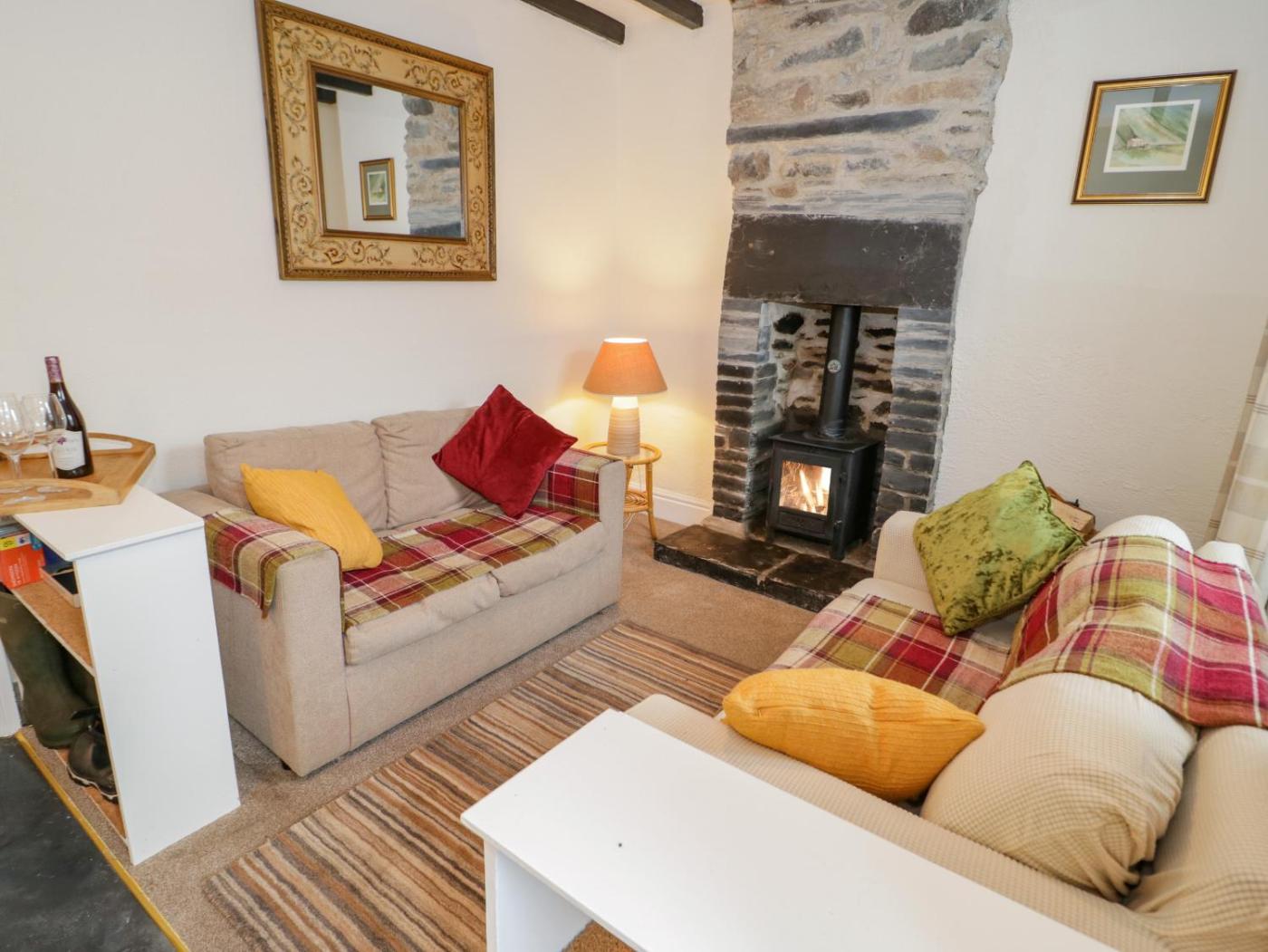 Holiday Home. The fireplace is a top feature of this holiday home. This holiday home comes with 2 bedrooms, a seating area with a sofa and 1 bathroom with a walk-in shower. Guests can make meals in the kitchen that features a stovetop, a refrigerator, an oven and a microwave. The holiday home features a washing machine, a dining area, a wardrobe, an electric kettle, as well as a TV. The unit has 2 beds.