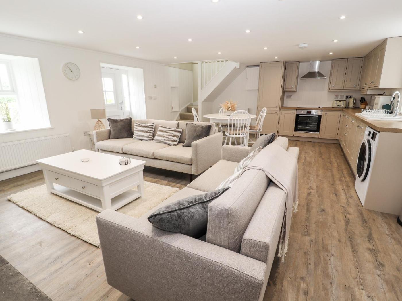 Holiday Home. Guests will have a special experience as this holiday home features a fireplace. This holiday home is comprised of 2 bedrooms, a seating area with a sofa and 2 bathrooms with a walk-in shower. Guests can make meals in the kitchen that comes with a stovetop, a refrigerator, a dishwasher and an oven. The holiday home offers a washing machine, a dining area, a wardrobe, a high chair for children, as well as a TV. The unit offers 2 beds.