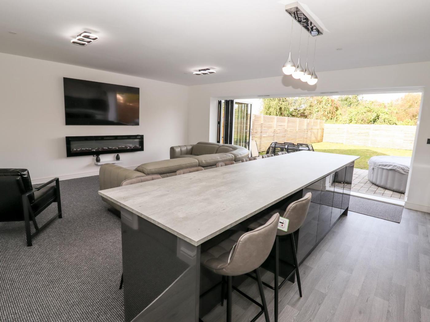 Holiday Home. This holiday homes standout features are the hot tub and fireplace. This spacious holiday home includes 4 bedrooms, a seating area with a sofa and 2 bathrooms with a walk-in shower. Guests can make meals in the kitchen that is fitted with a stovetop, a refrigerator, a dishwasher and an oven. The holiday home offers a washing machine, a dining area, a wardrobe, a TV, as well as sea views. The unit has 4 beds.