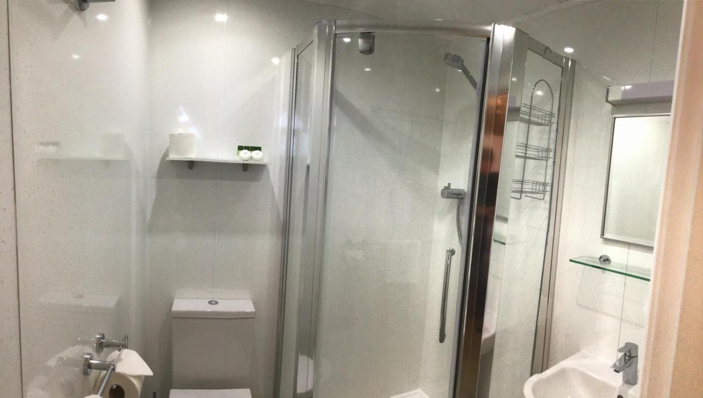Modern Amenities: Guests enjoy a shower and hairdryer.