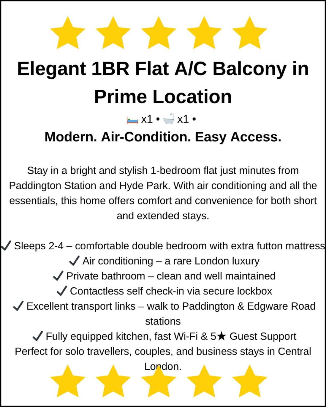 Luxury One Bedroom Apartment With AC, Bidet, Balcony View, Free Coffee, Tea, WiFi in Central London
