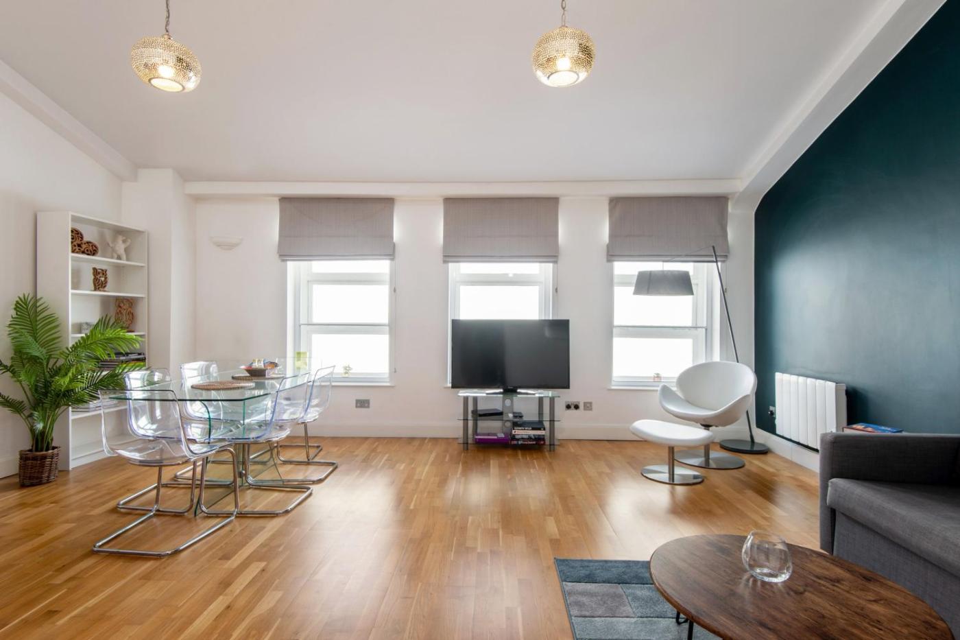 In a central area of London, located within a short distance of St Pauls Cathedral and Kings Cross Station, Mulberry North Penthouse by City Living London offers free WiFi, air conditioning and household amenities such as a microwave and kettle. It is situated 1.5 km from Kings Cross St Pancras and provides a lift. The property is non-smoking and is1.5 km from British Museum.
