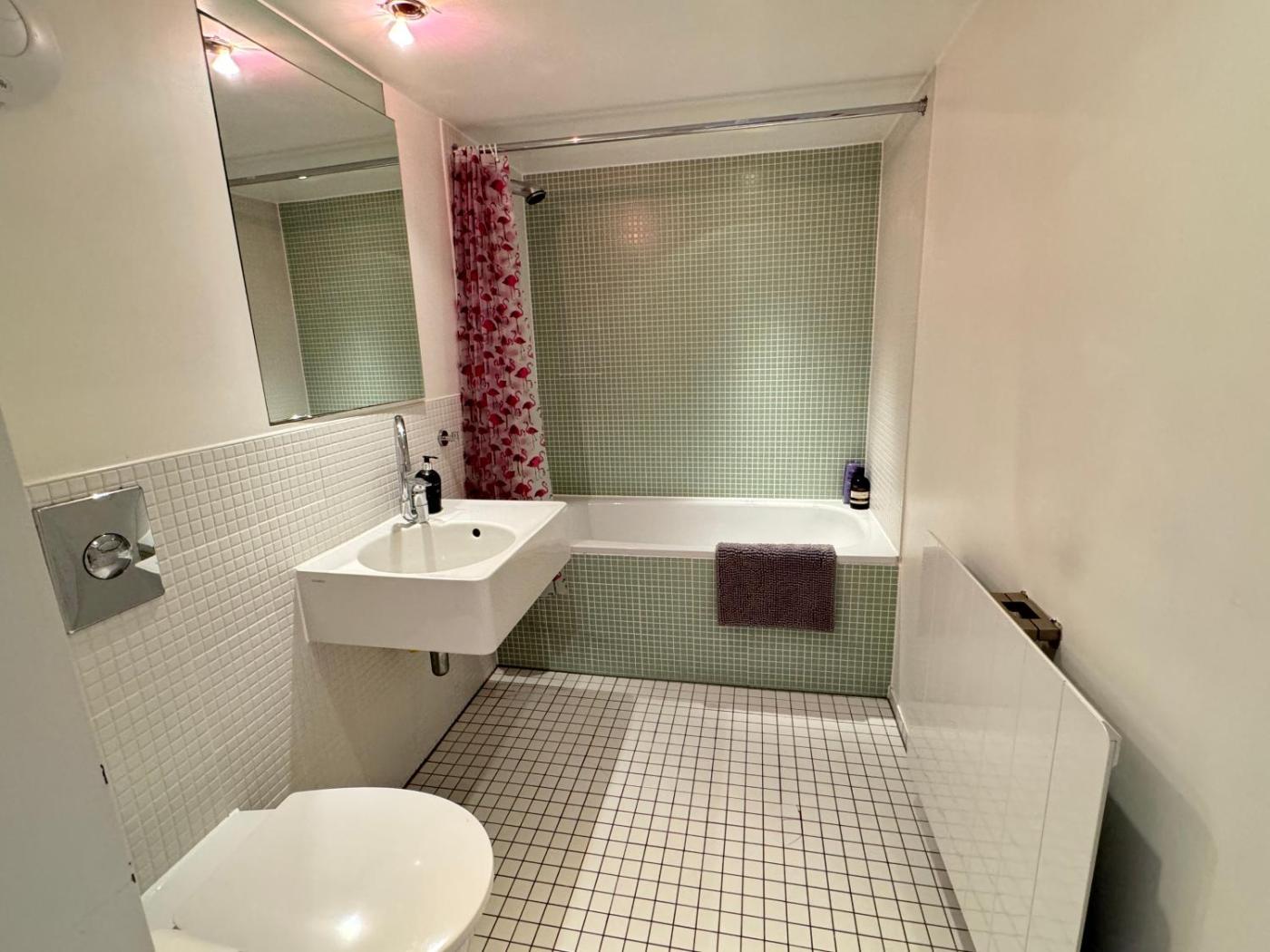 Apartment. This apartment features 1 bedroom, a kitchen and 2 bathrooms with a bath and a hairdryer. Meals can be prepared in the kitchen, which has a stovetop, a refrigerator, a dishwasher and kitchenware. The apartment is fitted with a TV, a washing machine, a tea and coffee maker, as well as heating. The unit has 1 bed.