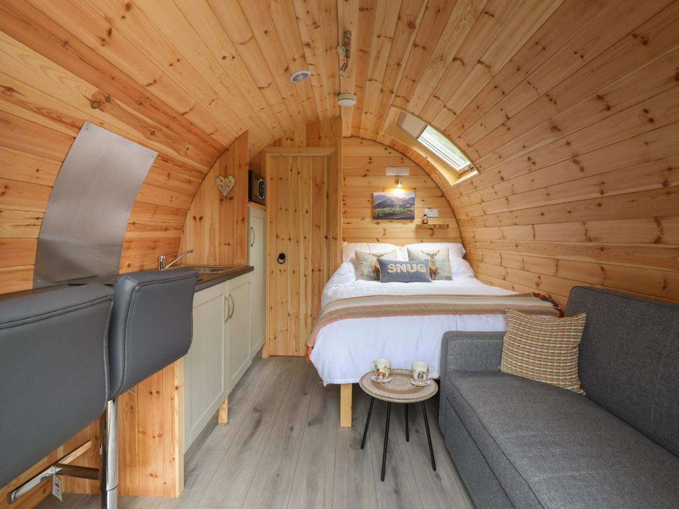 Holiday Home. The hot tub is a top feature of this holiday home. This holiday home comes with 1 bedroom, a seating area with a sofa and 1 bathroom with a walk-in shower. In the kitchen, guests will find a stovetop, a refrigerator, a microwave and a toaster. The holiday home features a dining area, a wardrobe, an electric kettle, heating and a TV. The unit has 1 bed.