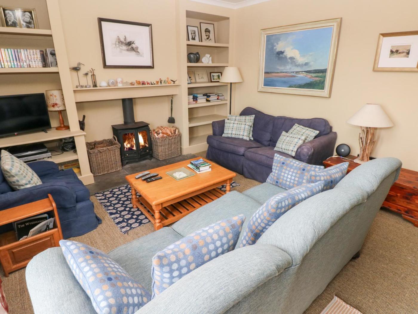 With free WiFi, this holiday home features a TV, a washing machine and a fully equipped kitchen with a dishwasher and oven. There is also a seating area and a fireplace.