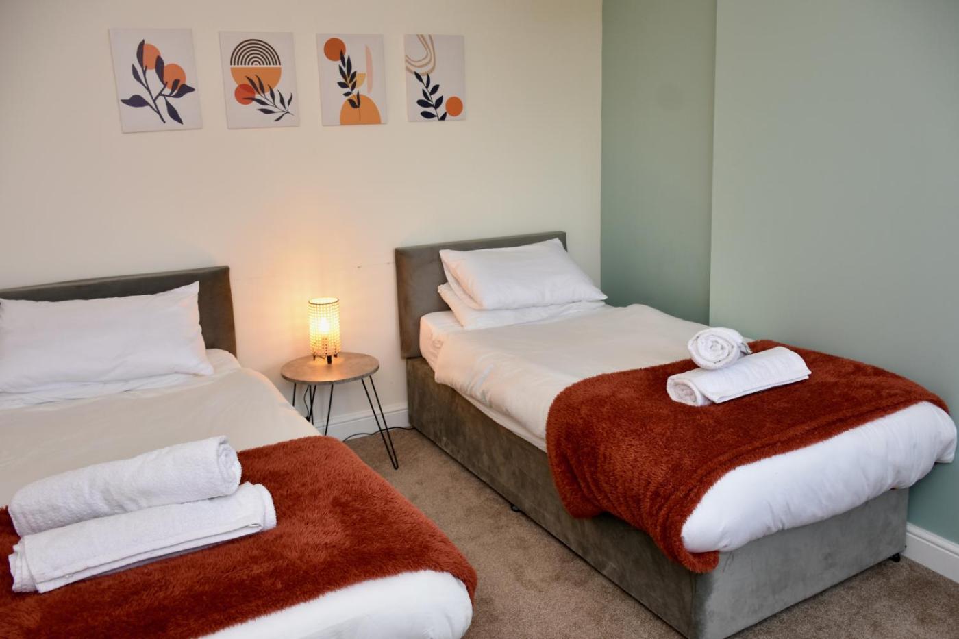 Three-Bedroom House. This holiday homes special feature is the fireplace. Featuring a private entrance, this holiday home comprises 1 living room, 3 separate bedrooms and 2 bathrooms with a walk-in shower and a bath. The well-equipped kitchen features a stovetop, a refrigerator, a dishwasher and an oven. The holiday home provides a flat-screen TV with streaming services, a washing machine, a tea and coffee maker, a seating area as well as garden views. The unit offers 4 beds.