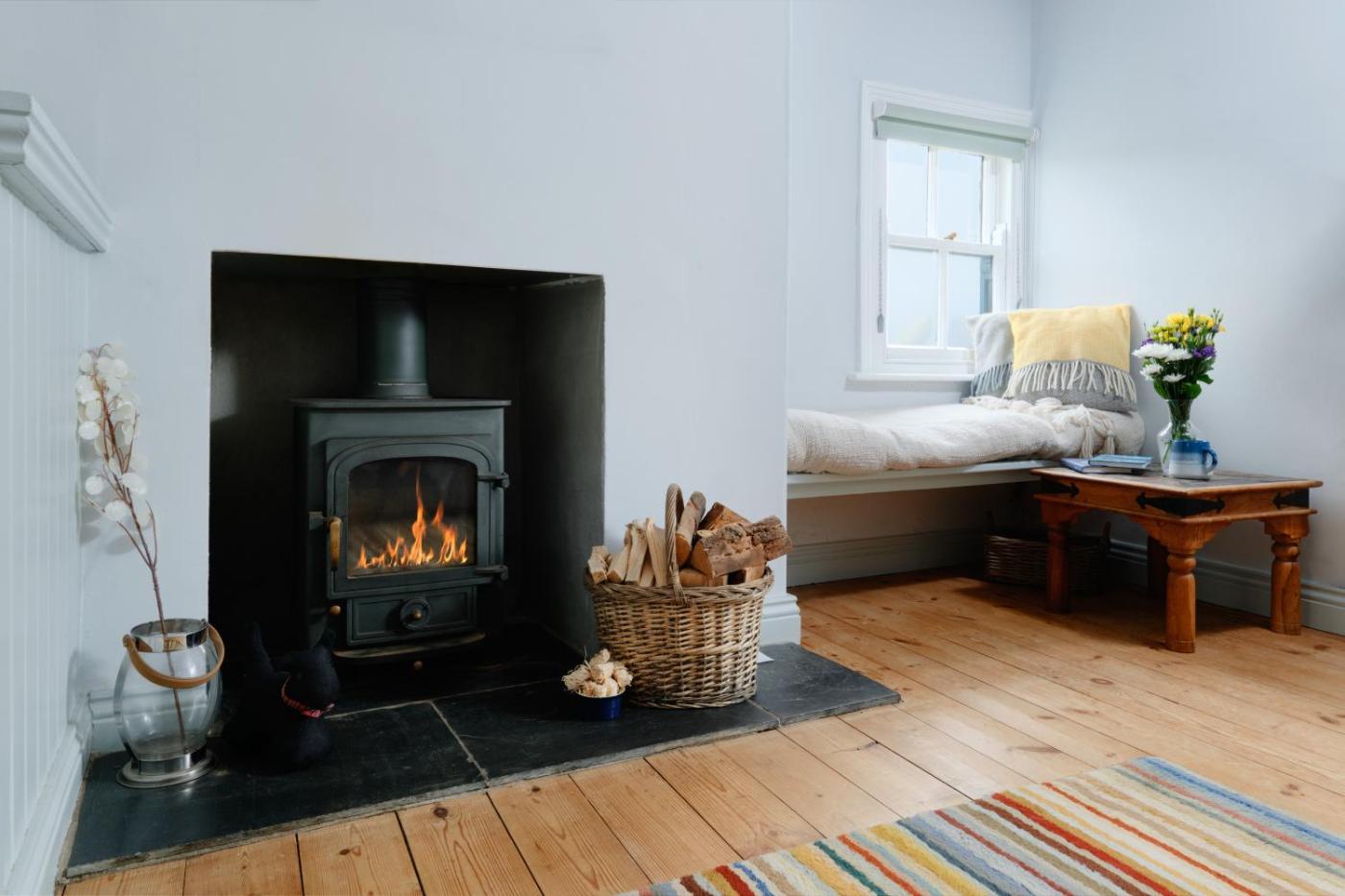 The holiday home has 1 bedroom, a TV, a fully equipped kitchen with an oven and a microwave, a washing machine, and 1 bathroom with a shower. There is also a seating area and a fireplace.