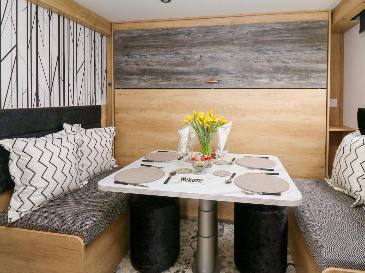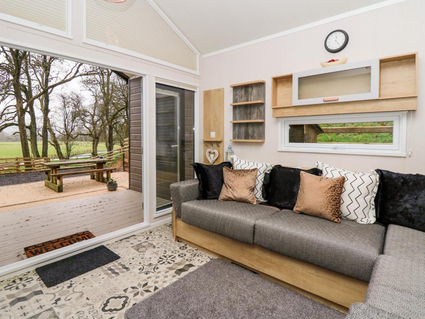 Holiday Home. This holiday homes special features are the hot tub and the fireplace. This holiday home comes with 1 bedroom, a seating area with a sofa and 1 bathroom with a walk-in shower. In the kitchen, guests will find a stovetop, a refrigerator, an oven and a microwave. The holiday home features a dining area, a wardrobe, an electric kettle, heating and a TV. The unit has 1 bed.