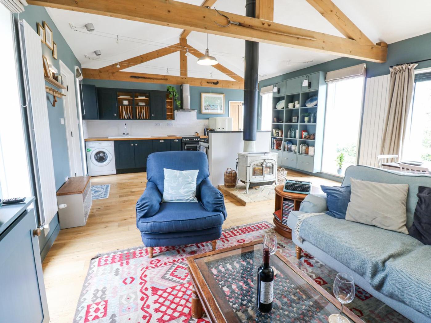 Holiday Home. The fireplace is a top feature of this holiday home. This holiday home comes with 1 bedroom, a seating area with a sofa and 1 bathroom with a walk-in shower. In the well-fitted kitchen, guests will find a stovetop, a refrigerator, a dishwasher and an oven. The holiday home features a washing machine, a dining area, a wardrobe, an electric kettle, as well as a TV. The unit has 1 bed.