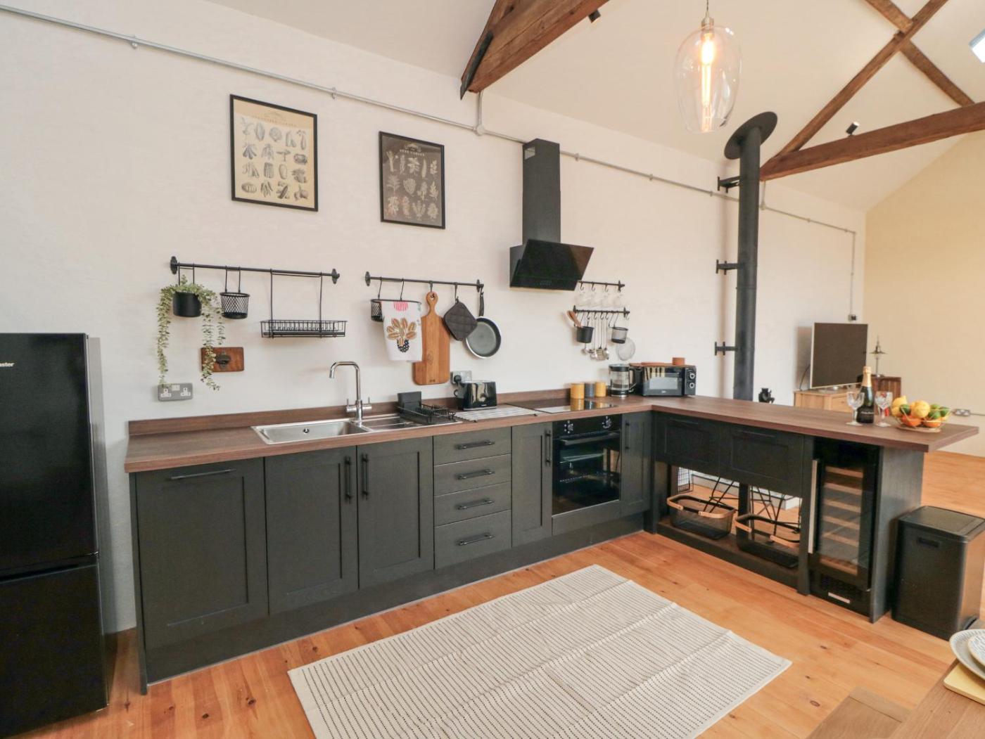 Holiday Home. This holiday homes standout features are the hot tub and fireplace. This holiday home comes with 2 bedrooms, a seating area with a sofa and 1 bathroom with a walk-in shower. Guests can make meals in the kitchen that features a stovetop, a refrigerator, a dishwasher and a microwave. The holiday home features a dining area, a wardrobe, an electric kettle, a high chair for children, as well as a TV. The unit has 2 beds.